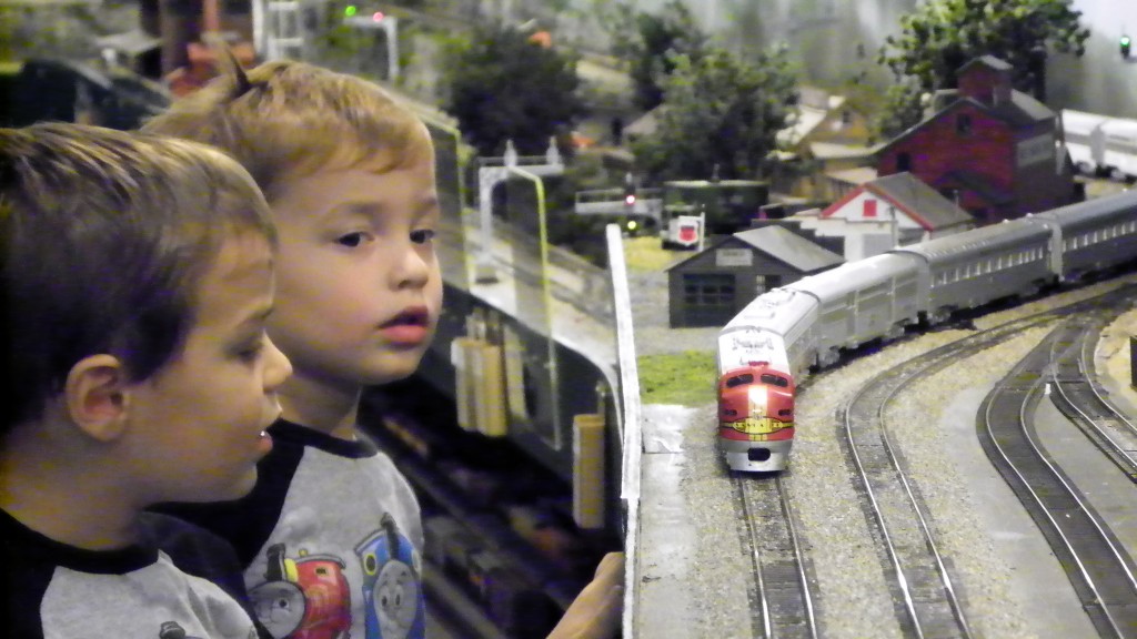 Two young future railroader brothers do a rolling inspection of the Santa Fe Chief during an open house a few years ago.